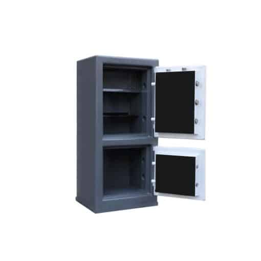 مقاومت در آتش سوزی در دمای ۱۰۰۰ درجه دارای سیستم ضد سرقت (سیستم ضد سرقت پشت قفل و رمز قرار میگیرد زمانی که سارق به قفل و یا رمز ضربه بزند سیستم ضد سرقت فعال میشود و مانع بازگشایی گاوصندوق میشود)